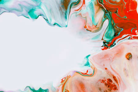 Close Up Colorful Red Green White Colors Fluid Pouring Abstract Art Acrylic Painting Texture Background