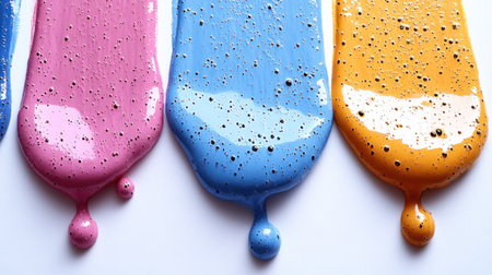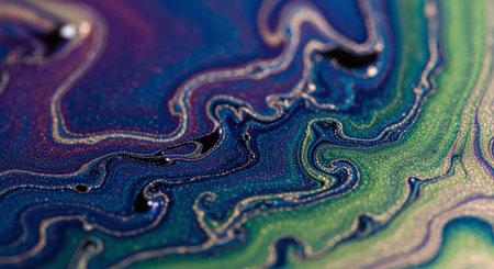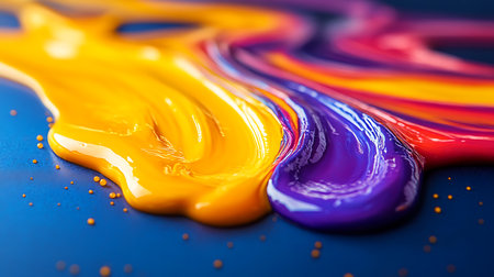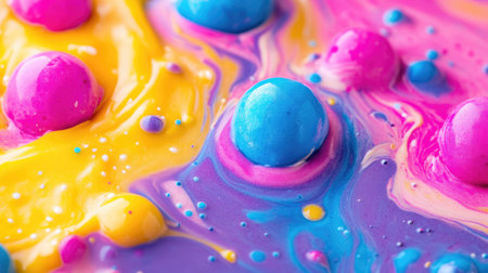 A macro shot of a creative background with abstract acrylic painted colorful patterns