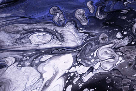 Abstract fluid art background navy blue and gray colors. Liquid marble. Acrylic painting on canvas with white gradient and splash. Alcohol ink backdrop with wavy pattern.
