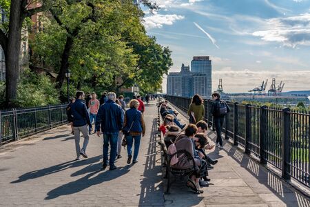 NEW YORK, USA - OCTOBER 13: Brooklyn Heights Promenade is a pedestrian walkway where people come to view the Manhattan skyline on October 13, 2019 in New York
