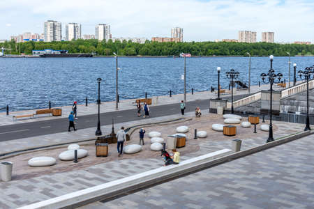 Moscow, Russia - September 16, 2025: The Marc Chagall Embankment- new embankment in the south of Moscow. Promenade along the Moscow River.