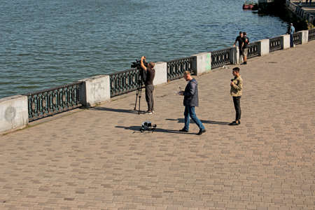 Dnepropetrovsk, Ukraine - 09.17.2021: Local TV reporters using drone filming on an environmental disaster.