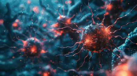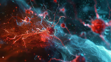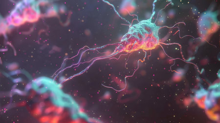 Explore the fascinating world of neurons with this vivid image, capturing the beauty and complexity of nervous system cells in stunning detail and color.