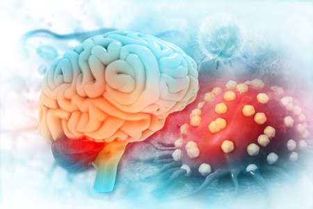 Cancer cells attacking the human brain 3d illustration