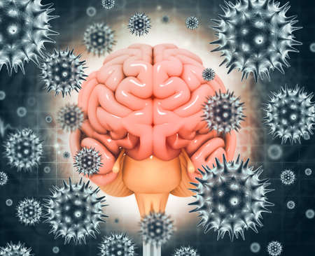 Virus or bacteria attacking the human brain. Viral disease. 3d illustration