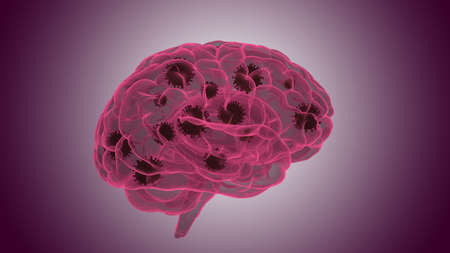 Virus or bacteria infected human brain.3d illustration