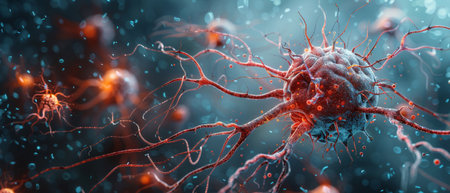 A detailed microscopic view showcasing neurons affected by multiple sclerosis.