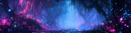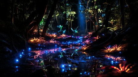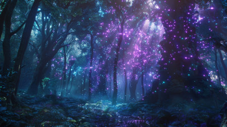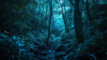 forest image illuminated at night by bioluminescence