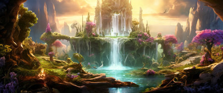 Enchanting Fantasy Landscape with Waterfalls and Floating Islands