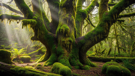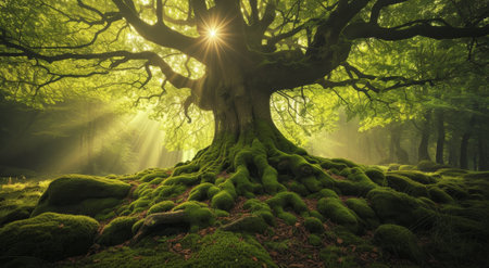 Majestic Tree Bathed in Sunlight in a Lush Forest