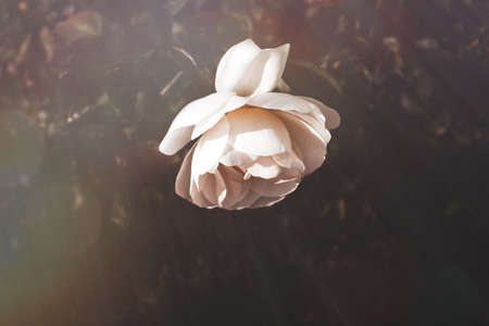 beautiful white rose in warm autumn sun in closeup and bokeh