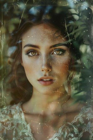 Portrait shot of a pretty young woman, Surreal blurry portrait.