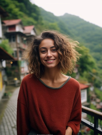 pretty woman outdoors rocky mountains charm close-up travel