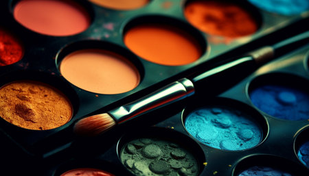 Vibrant eyeshadow palette set for glamorous makeup variations generated by artificial intelligence