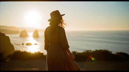 Witness a spectacular sunset over Irish cliffs, where the sky explodes in pink and orange The sea mirrors these vibrant colors, while the wind whispers ancient stories Subtle, glowing Celtic knots overlay the scene, enhancing nature's breathtaking artistry This is a moment of pure magic and beauty AI Generative