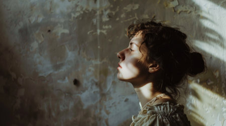 Moody Portrait of Woman in Dramatic Light Beam