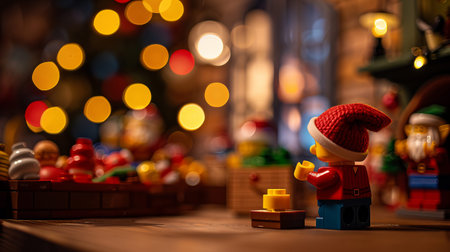 Elves in gather workshop to craft toys while the holiday spirit fills the air with lights and cheerful decorations all around them.