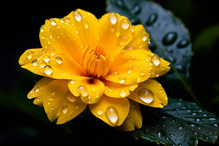 Dew-Kissed Beauty: A Captivating Yellow Flower Reflecting in Water Droplets