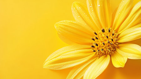 Close up of a yellow daisy fresh and dewy. Generative AI