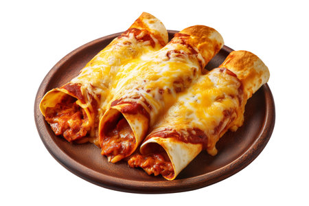 An AI generated illustration of A beef enchiladas isolated on the white background