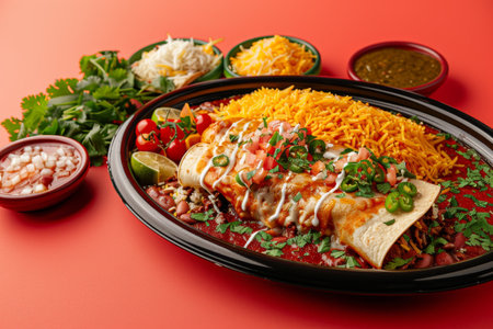 spread of traditional Mexican dish enchilada. Generative AI