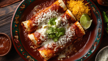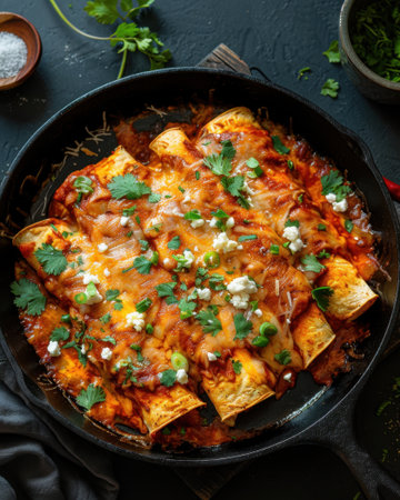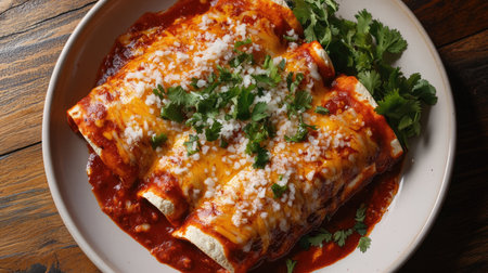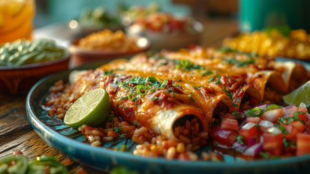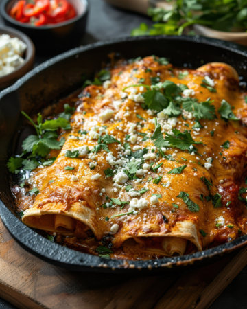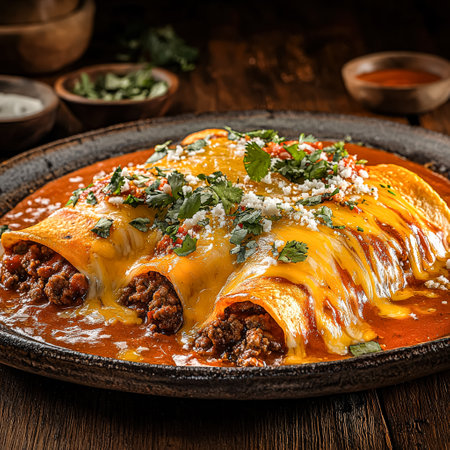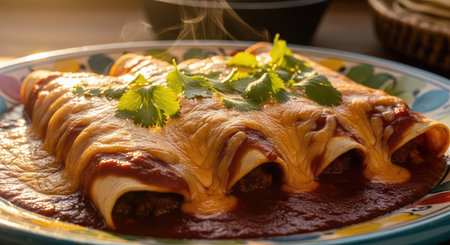 Authentic Mexican cuisine enchiladas showcasing gooey melted cheese