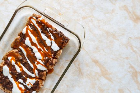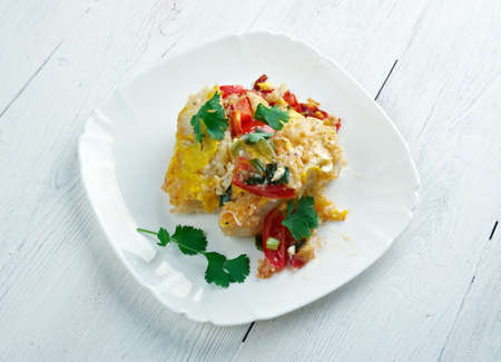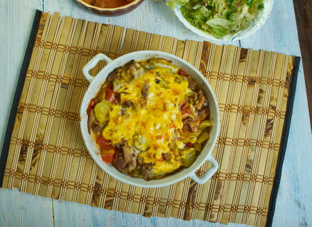 Bobotie, South African cuisine , Traditional assorted dishes, South African dish consisting of spiced minced meat baked