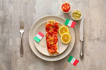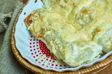 delicious homemade vegetable lasagna with tomato, paprika, onion and zucchini