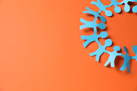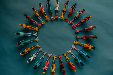 Paper people holding hands in a large circle, facing inward, representing a united community and strong bonds