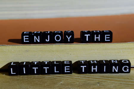 Enjoy the little thing on wooden blocks. Motivation and inspiration concept. Cross processed image