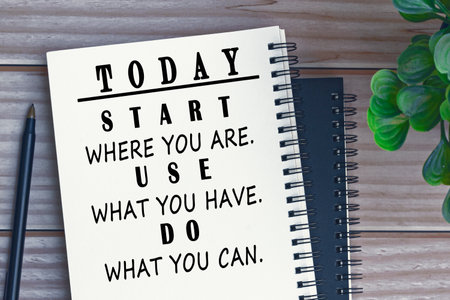 Motivational quote on a notepad - Start where you are, use what you have, do what you can.