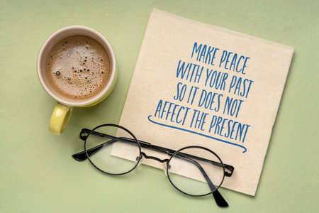 Make peace with your past so it does not affect the present - inspirational advice, handwriting on a napkin, personal development concept