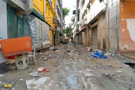 Shah Alam, Malaysia - Dec 24 2021: The aftermath of the flood at Taman Sri Muda Shah Alam, Selangor, Malaysia. Mud at the road need cleaning