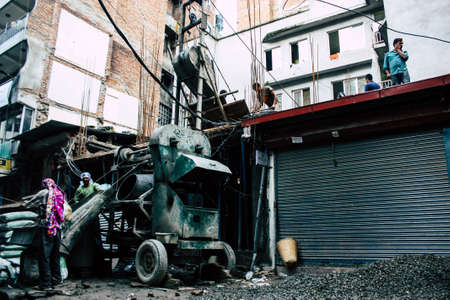 Kathmandu Nepal August 24, 2018 View of unknowns Nepali worker building a new house in Durbar street in Kathmandu in the morning