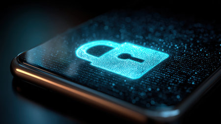 A sleek smartphone shows a bright glowing lock symbol symbolizing digital security and privacy.