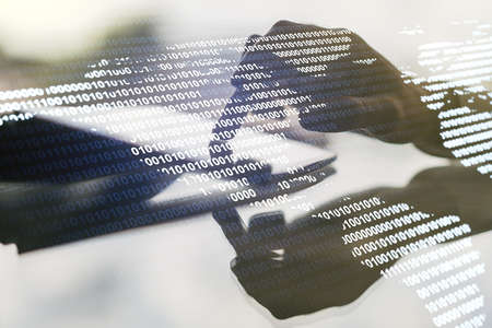 Writing programming functions on laptop. Big data and Internet of things trend. software development. Internet security hack