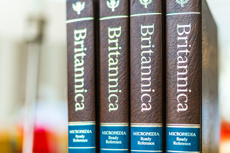 POZNAN, POL - FEB 03, 2020: Encyclopedia Britannica volumes in a public library