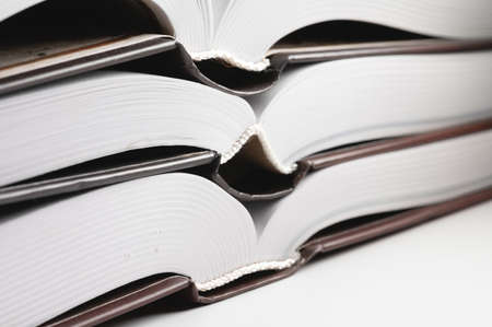 Hardcover Book, Fore Edge, Closed Pages On White Background on a Sunny Day. Reading, Textbook, Business Leger, Cookbook, Fiction Literature, Bestseller Concept. Copy Space.