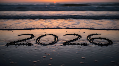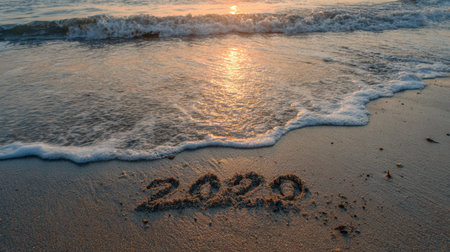 2020 numbers on the sand, happy new year