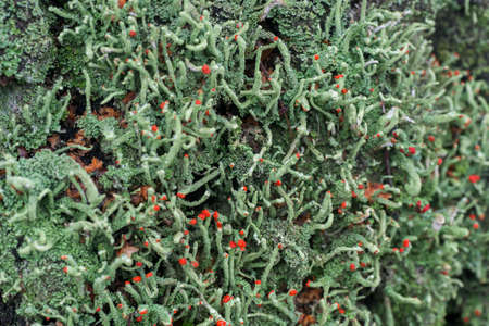 lichen cladonia red apothecia macro on tree