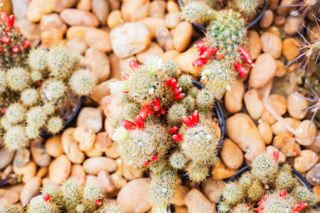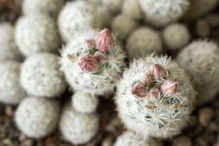Cactus flowers, Mammillaria schiedeana with pink flower is blooming on pot, Succulent, Cacti, Cactaceae, Tree, Drought tolerant plant.