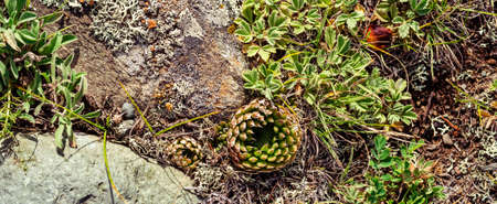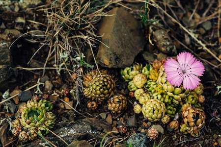 Plants of Chui steppe Succulents. View from above and stone
