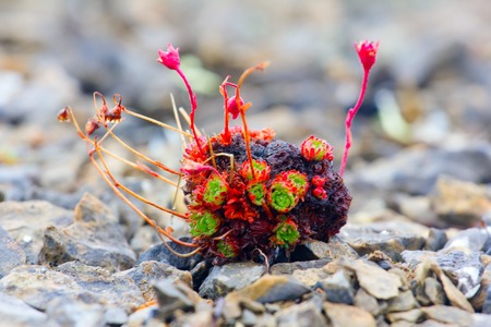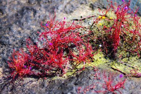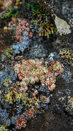 Red moss, the succulents on the mountain rocks
