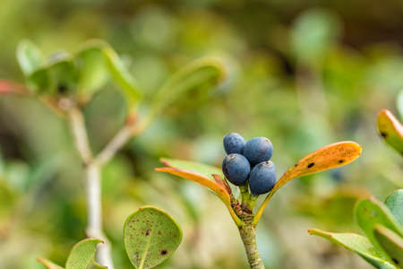 Generative AI : Harlequin Glorybower Clerodendrum trichotomum ripe drupe on red calyx