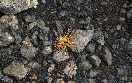 Saxifraga merkii mountain plants grow on the ancient basaltic lavas