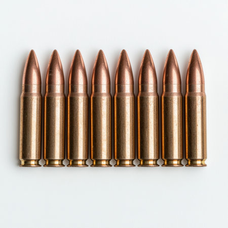 Close-up of eight bullets lined up in a row