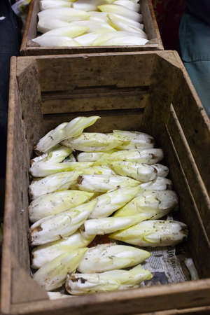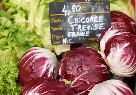 Fresh chicory vegetables for sale on Provence market of Marseille, South France