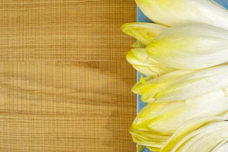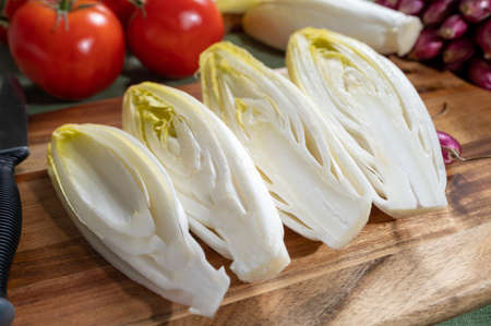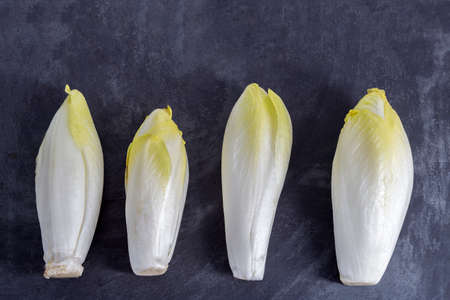 Fresh raw Belgian bitter chicory salad ready to cook, close up