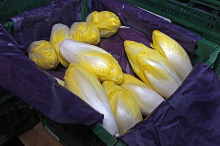 Fresh organic chicory endive salad ready to eat, traditional winter food in Belgium and the Netherlands