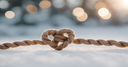 Close-up view of a tightly bound rope knot, highlighting textures and details against a dark background, perfect for representing strength and connection.